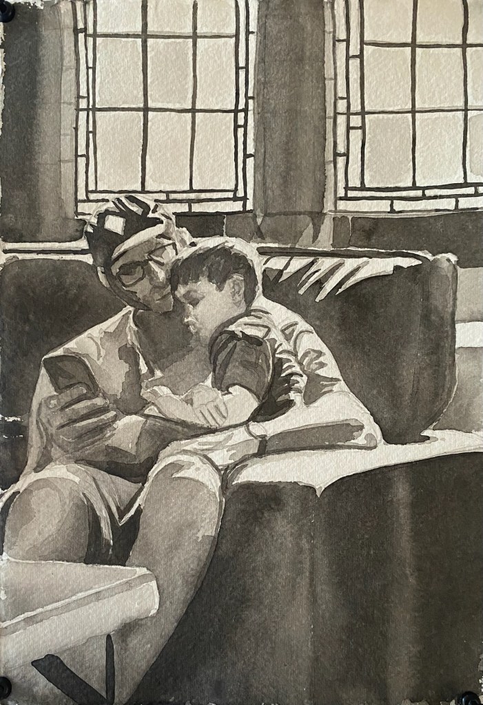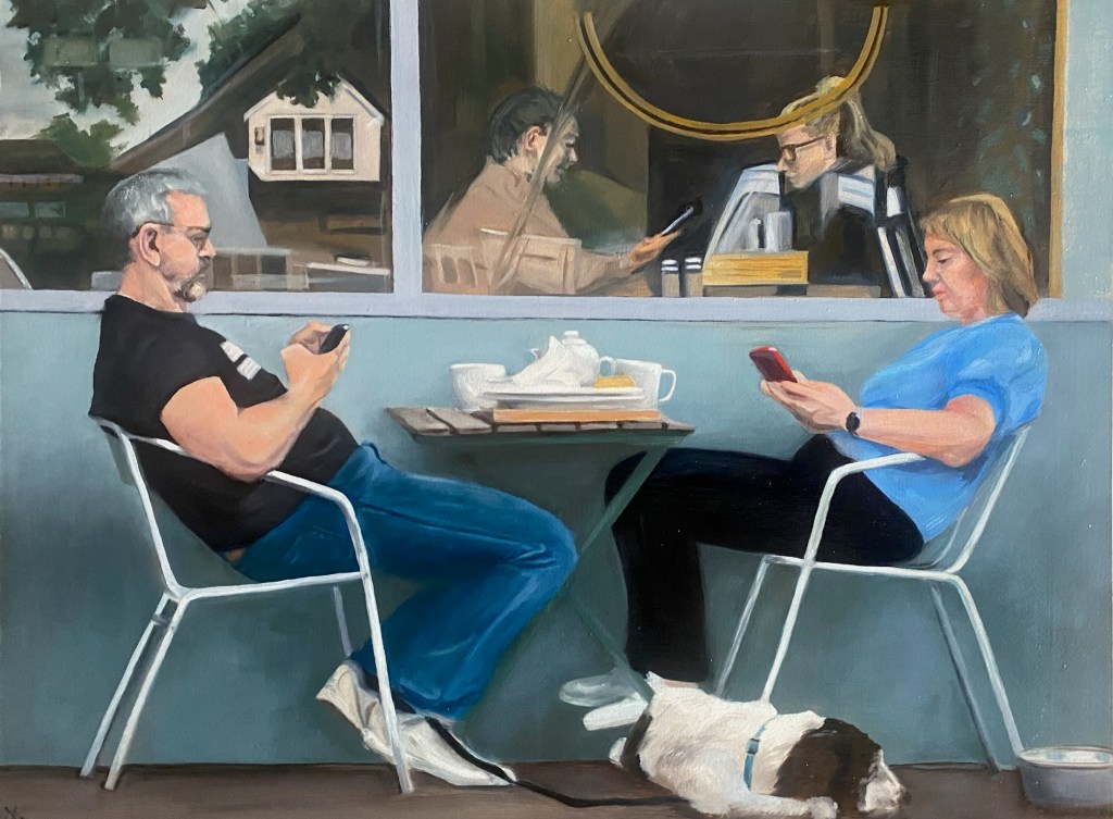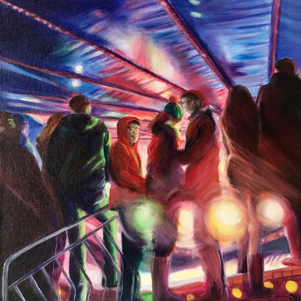 Happy and Glorious. Oil. 2025.After School. Oil on canvas. 2025Back then. Oil. 2025.The girl on the train. Charcoal and pastel. 2025.Oil on linen board 2024.Aux cafe. Oil on linen board. 2024.Waiting for mum. Oil on board. 2024.Searching. Oil on canvas. 2024.Charcoal on paper. 2024.Charcoal on paper. 2023.Incommunicado. Oil on linen board. 2024.working drawing. charcoal. 2024.working drawing. ink. 2024.Dad’s bonfire. Oil on paper. 2022.Waiting for a waltz. Oil on linen board. 2023.